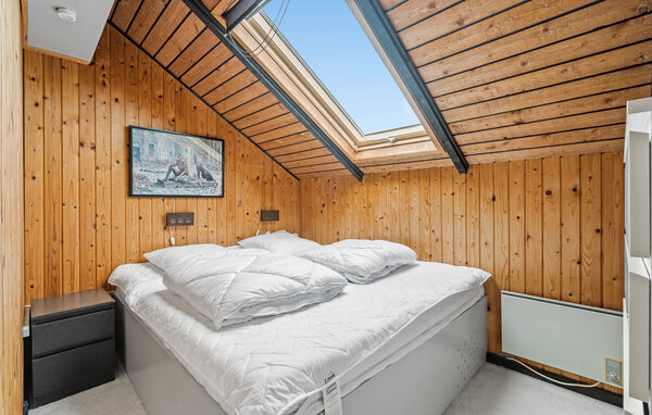Der er lagt op til nogle fredfyldte feriedage i dette indbydende sommerhus, hvor I får optimale rammer til at tanke op og slappe af. Huset er skønt indrettet med et stort, centralt fællesrum, hvor I kan samles om måltiderne, brætspil og hver jeres egne sysler. Sæt jer med en kop kaffe på køkkenets barstole, læn jer tilbage med en god bog i sofaen eller sæt jer og nyd udsigten til rummets flotte træloft. Her sænker freden og roen sig automatisk.