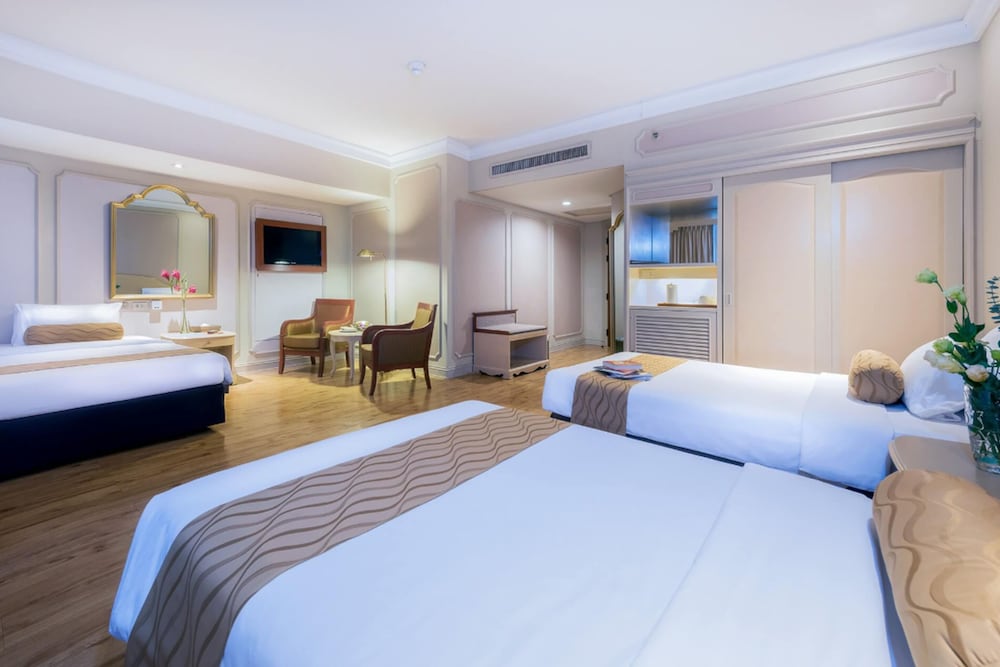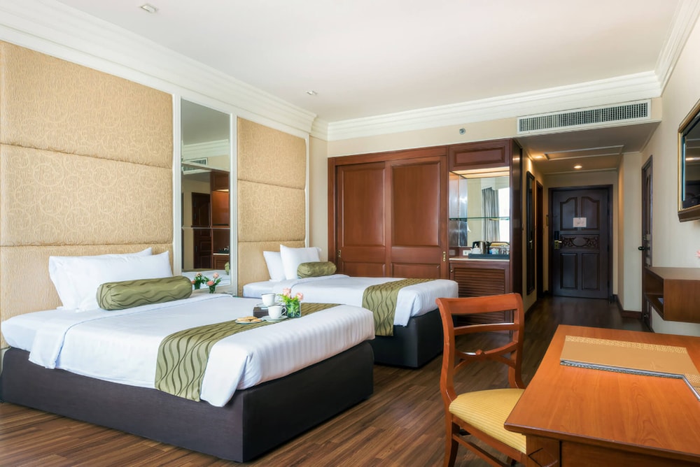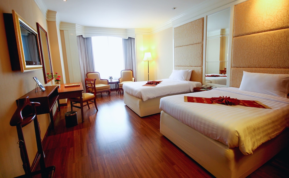 Med et ophold ved Emerald Hotel Bangkok har du en base i centrum af Bangkok, blot 10 minutters kørsel fra Pratunam Marked og Siam Paragon Indkøbscenter. Dette hotel med luksusfaciliteter ligger 7,9 km fra Siam Center og 8 km fra Lumpini Park. Føl dig hjemme i et af de 605 værelser med individuelt design, der desuden har køleskab og minibar. Der tilbydes et fladskærms-tv med satellitkanaler som underholdning, og med gratis Wi-Fi kan du altid komme på nettet. Værelset har et privat badeværelse med bruser samt gratis toiletartikler og bidet. Faciliteter inkluderer telefoner samt pengeskabe og skriveborde. De viste afstande er afrundet til nærmeste 0,1 kilometer.