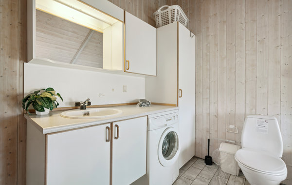 Spændende feriehus med en god og funktionel indretning, bl.a et skønt badeværelse. Ferielandet Holmsland Klit er kendt og elsket af mange, ikke mindst på grund af den smukke og storslåede natur. Høje klitter og hedelandskab præger dette enestående område mellem hav og fjord. Her står 40 km strand til jeres rådighed til traveture, solbadning eller en tur i bølgerne alt efter årstid og temperament. Udover naturen har området mange seværdigheder, attraktioner og forretninger. Ikke langt fra huset ligger den driftige fiskeriby Hvide Sande hvor der er rige muligheder for indkøb, windsurfing og lystfiskeri.Desuden er det muligt at komme på en mindre sejltur på Nordsøen med Bramsejlskonnerten MAJA.