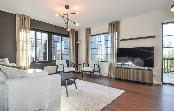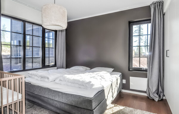 Nyd en kombination af afslapning og spændende aktiviteter i jeres moderne feriehus i Pine Hill Idre. Den ideelle beliggenhed inviterer jer til at udforske det maleriske bjerglandskab, mens huset selv giver jer den komfort, I har brug for til et afslappende ophold. Den stilfulde stue med store vinduer og en hyggelig sofa skaber en varm atmosfære, hvor I kan nyde den omgivende natur i fulde drag. Læn jer tilbage og lad det imponerende landskab påvirke jer, eller tilbring afslappende aftener på terrassen. Det veludstyrede køkken giver jer mulighed for at tilberede lækre måltider efter en begivenhedsrig dag.