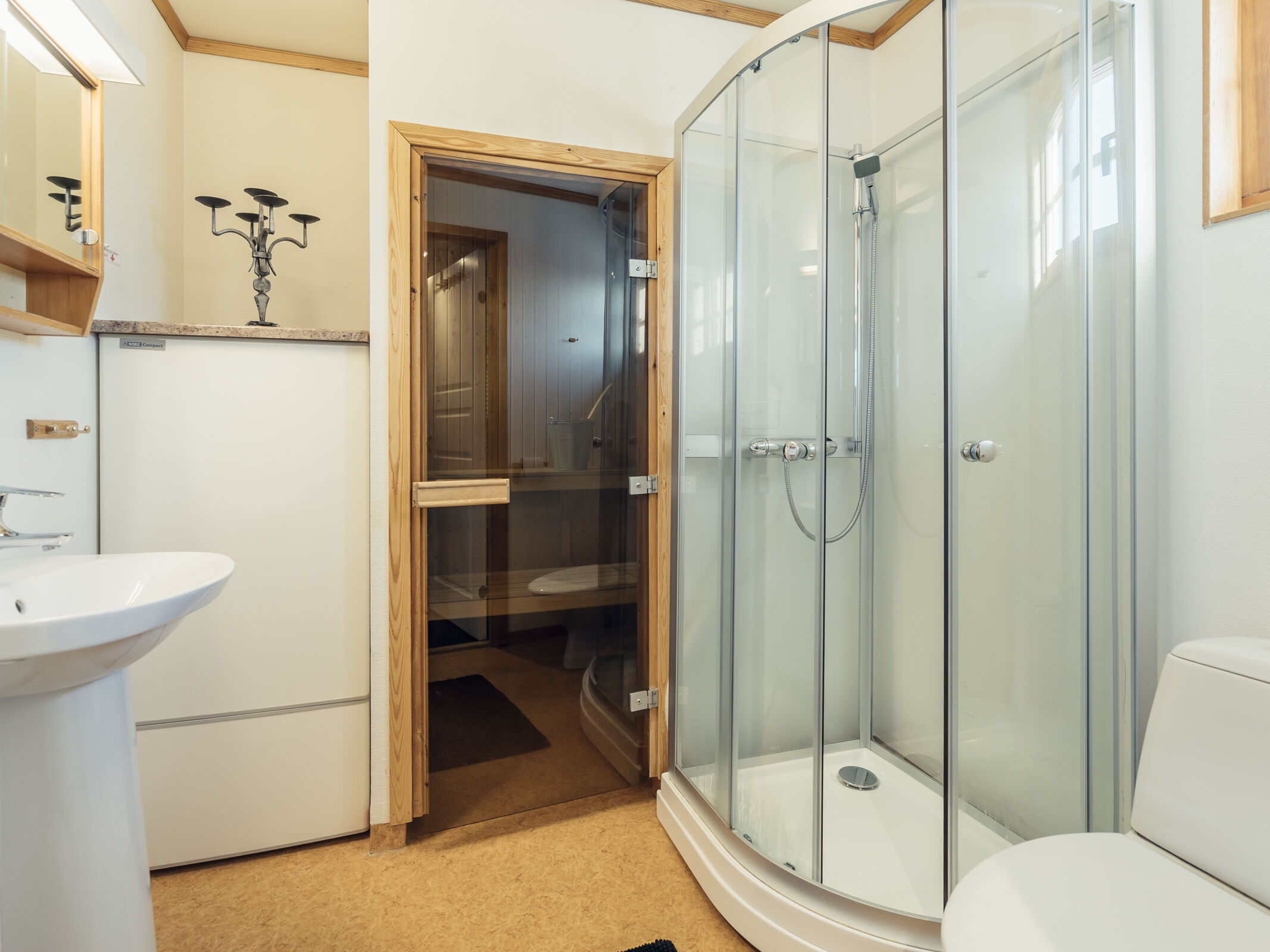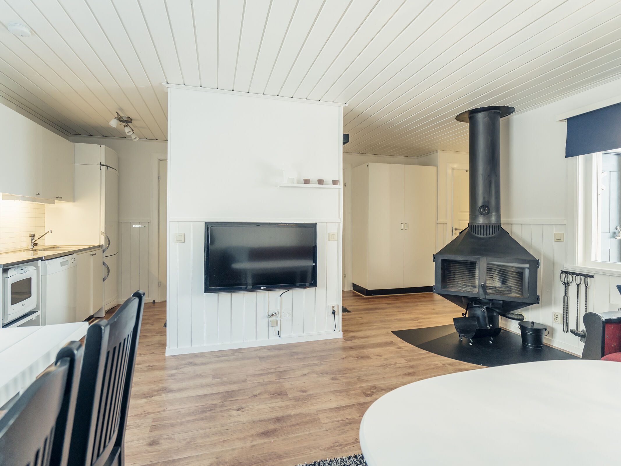 Hyggeligt rækkehus i området med plads til op til 8 personer. Her er der en åben planløsning med køkkenafdeling, spiseplads, TV-hjørne og en brændeovn, som skaber en hyggelig stemning. Soveværelse 1 har en dobbeltseng, soveværelse 2 har to køjesenge, og i opholdsstuen findes en sovesofa med plads til 2 personer. Køkkenafdelingen er udstyret med komfur, opvaskemaskine, mikroovn, køleskab og en mindre fryser. Toilet med bruser og en dejlig sauna, som man kan krybe ind i efter kolde dage. Tørreskab, motorvarmer og terrasse findes ved huset. Rygning og husdyr er ikke tilladt i denne bolig. Opladning af elbiler er kun tilladt ved dertil indrettede ladestandere.