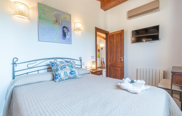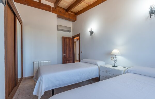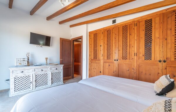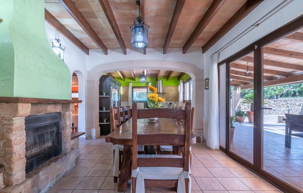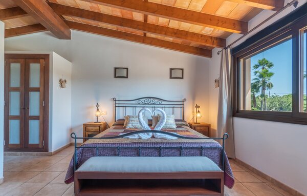 For en familievenlig ferie på Mallorca tilbyder "Son Bosch"-gården alt hvad du behøver og mere til. Dette rummelige hus med naturstensfacade ligger i landlige omgivelser på indhegnet grund og tilbyder et trygt og afslappende miljø. Dette er et feriehus i Fincallorca. De børnevenlige udendørsarealer er designet til at nydes med pool, børnesikret legeplads med bambushytte og træhytte og masser af plads til at alle kan slappe af. Den hyggelige overdækkede terrasse er perfekt til familiegrill, mens to underjordiske parkeringspladser sørger for komfort i de varme sommermåneder. Indvendigt kombinerer bondegården traditionelle mallorcanske elementer med moderne komfort. I stueetagen er der en stue med en stor hjørnesofa, ideel til socialt samvær, mens det veludstyrede køkken og den åbne spiseplads giver plads til hele familien. Et soveværelse og et badeværelse er også på dette niveau. En trappe med børnesikring fører fra stuen til øverste etage. Ovenpå er der et master soveværelse med påklædningsområde og en-suite badeværelse og yderligere to soveværelser, der deler et badeværelse. Det femte soveværelse med eget toilet er placeret i et separat anneks. Aircondition på alle områder sikrer et behageligt ophold, selv i sommervarmen. Den familievenlige villa "Son Bosch" ligger mellem Inca og Búger ved foden af Tramuntana-bjergene. Til dine daglige indkøb kan du tage til Inca, hvor du også kan shoppe hver torsdag eller besøge det livlige ugentlige marked i byen. De smukke bugter og strande i det nordøstlige, især Alcúdia-bugten, er meget nemme at nå med en lejebil.