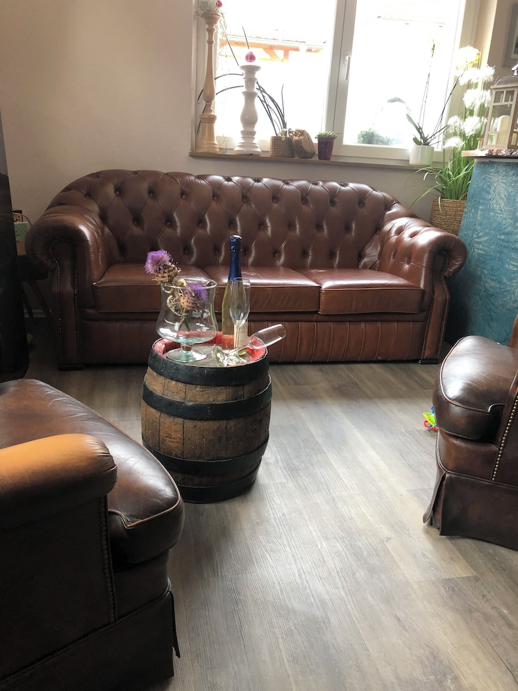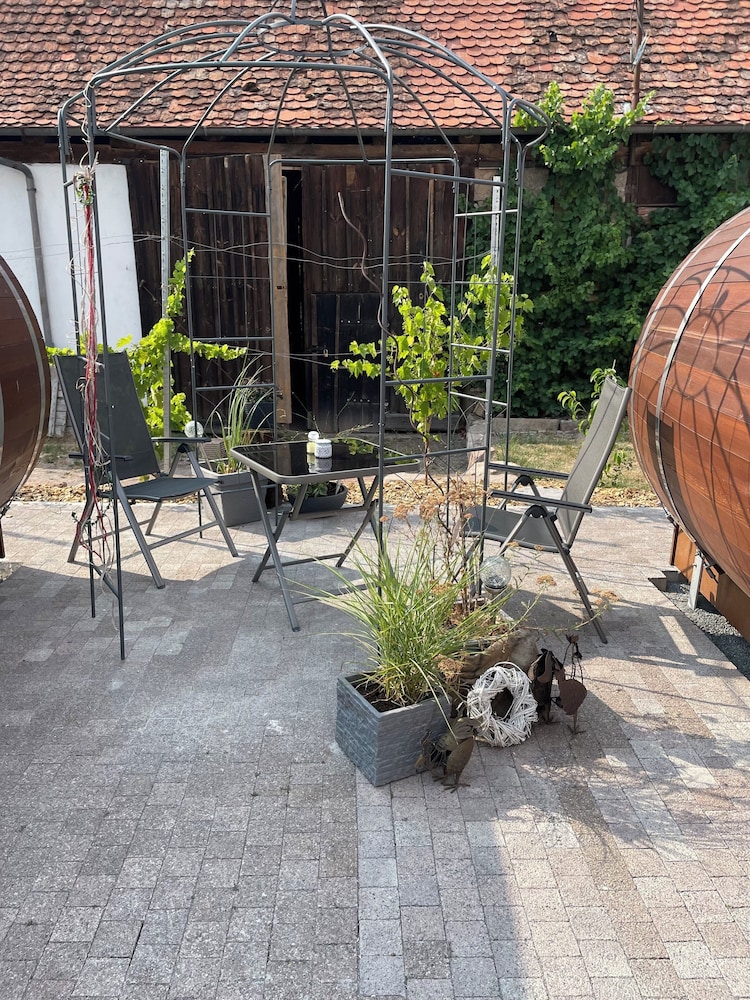 Schlafen im Weinfass i Ipsheim ligger kun fem minutters gang fra Naturpark Fränkische Schweiz-Veldensteiner Forst og Naturpark Steigerwald. Denne hytte ligger 2,4 km fra Naturpark Frankenhöhe og 6,9 km fra Franken-Therme Bad Windsheim. Overnat i et af de 4 værelser, der indeholder fladskærms-tv. Med gratis Wi-Fi kan du altid komme på nettet, og satellitkanaler sørger for underholdningen. Der er bruser på badeværelserne. Faciliteter inkluderer separate siddeområder og kaffe-/temaskiner, og rengøring udføres dagligt. De viste afstande er afrundet til nærmeste 0,1 kilometer.