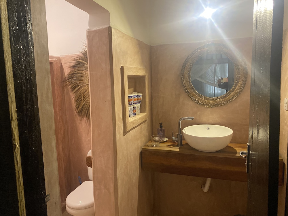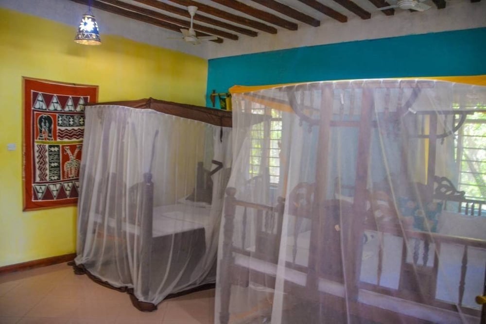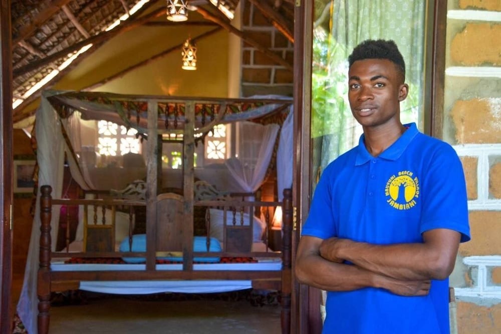 Mbuyuni Beach Village - Bungalows ligger ved havet i Jambiani, kun 1 minutters kørsel fra Jambiani Strand og 6 minutters kørsel fra Kite Centre Zanzibar. Dette hotel ved stranden ligger 5,3 km fra Kuza Cave og 6,4 km fra Paje Strand. Du vil helt sikkert føle dig hjemme i et af stedets 21 værelser. Værelserne har privat balkon eller terrasse. Badeværelserne inkluderer bruser med brusehoved med spredningseffekt. Faciliteter inkluderer pengeskabe og skriveborde, og rengøring udføres dagligt. De viste afstande er afrundet til nærmeste 0,1 kilometer.