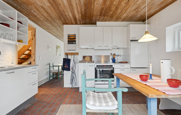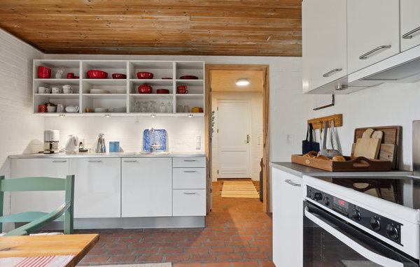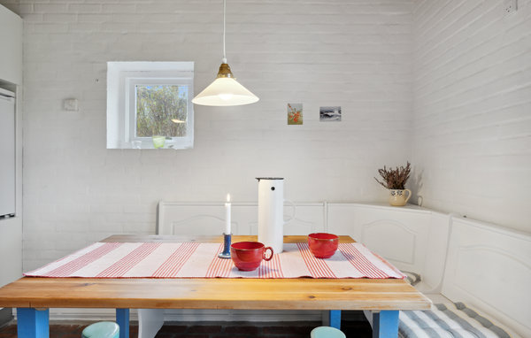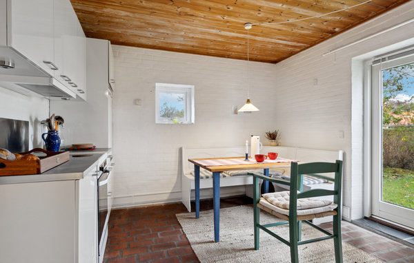I dette indbydende hus i Jerup er der gjort alt for at sikre, at I kan holde en skøn familieferie. Lyse rum med et flot samspil af mustensgulve, trælofter, pudsede murstensvægge og smagfulde indretningsløsninger gør det nemt at slappe af og lægge den travle hverdag til side. Nyd dagens måltider sammen og afslappende aftener i opholdsstuen, som har en dejlig udsigt til haven. Efter en aktiv dag kan I sludre til sent ud på aftenen, mens flammerne brænder lystigt i brændeovnen. Gå fra køkkenet ud i det fri og nyd en kop kaffe i dagens første solstråler.