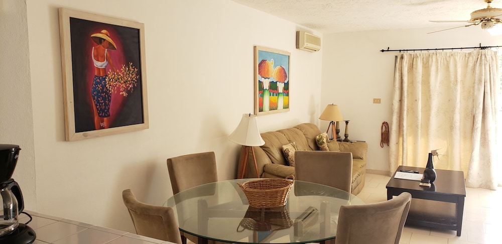 Overnatter du ved denne villa, som ligger tæt på stranden i Jolly Harbour, er du kun 10 minutters kørsel fra Jolly Beach og Mosquito Cove Beach. Denne villa ligger 13,5 km fra Dickenson Bay Beach og 2,3 km fra Hermitage Bay. Find dig til rette i denne villa med aircondition. Der er også et køkken med et køleskab og en ovn. Der er en privat balkon. Der er gratis Wi-Fi, så du altid kan komme på nettet, mens kabelkanaler sørger for underholdningen. Faciliteter inkluderer blandt andet et skrivebord og en mikrobølgeovn. Der er rengøring i begrænset omfang. De viste afstande er afrundet til nærmeste 0,1 kilometer.