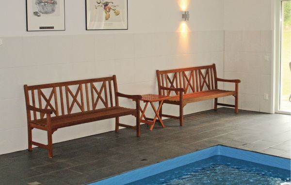 Du får et poolrum på 60 m2, stor terrasse mod syd samt en stor græsplæne til leg og spil. Der er også et rum med sauna, boblebad og køleskab med vin/øl. Dejligt soveværelse. Køkken og opholdsstue på 80 m2 ovenpå med plads til alle familiemedlemmer. Her er en pejs og plasma-tv. Gulvvarme i hele huset - fliser/egetræsparket.