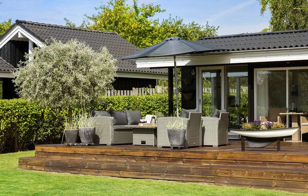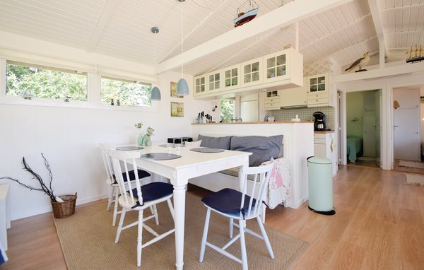 Her er sommerhuscharme for alle pengene i dette velindrettede og meget hyggelige sommerhus. Her findes en stor sydvendt terrasse hvoraf en del er overdækket. Huset er indrettet med en pæn stue i åben forbindelse med et lille men velindrettet køkken, to gode soveværelser med dobbeltsenge samt en alkove. Udelivet kan rigtig nydes ved dette sommerhus, i haven findes en stor grillhytte, hvor aftensmaden kan tilberedes og nydes. Fra huset er der kun kort gåafstand til en god badestrand.