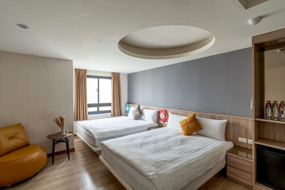 Med et ophold ved Chillax Inn i centrum af Kaohsiung er du kun 4 minutters gang fra Central Park og en 9 minutters gåtur fra Love River. Dette hotel ligger 1,7 km fra Liuhe Night Marked og 2 km fra Pier-2 Art Center. Du vil helt sikkert føle dig hjemme i et af stedets 38 værelser. Din seng er udstyret med dundyner og premium-sengetøj. Med gratis Wi-Fi kan du altid komme på nettet, og kabelkanaler sørger for underholdningen. Badeværelserne har badekar eller bruser, hårtørrer og hjemmesko. De viste afstande er afrundet til nærmeste 0,1 kilometer.