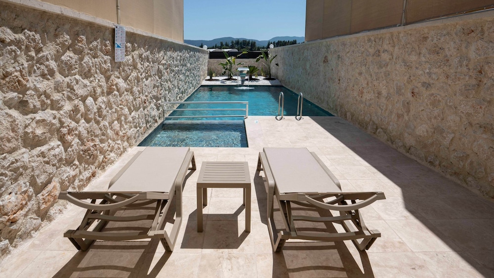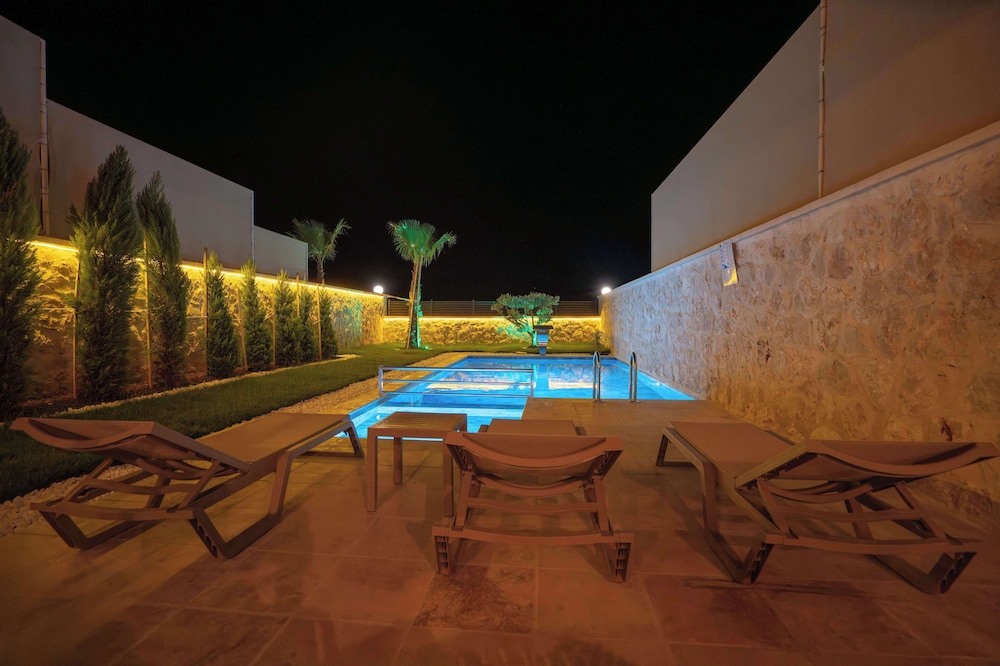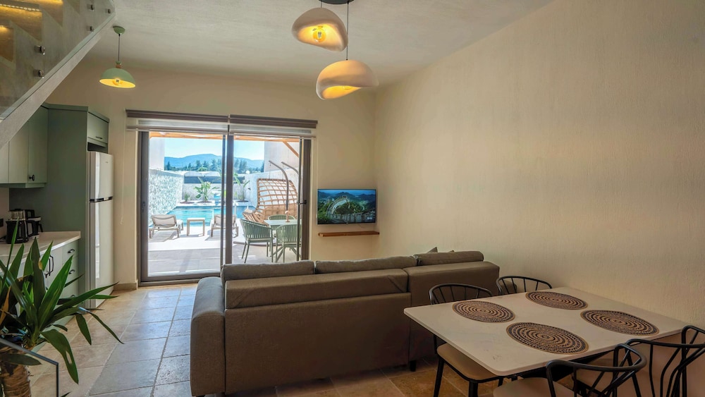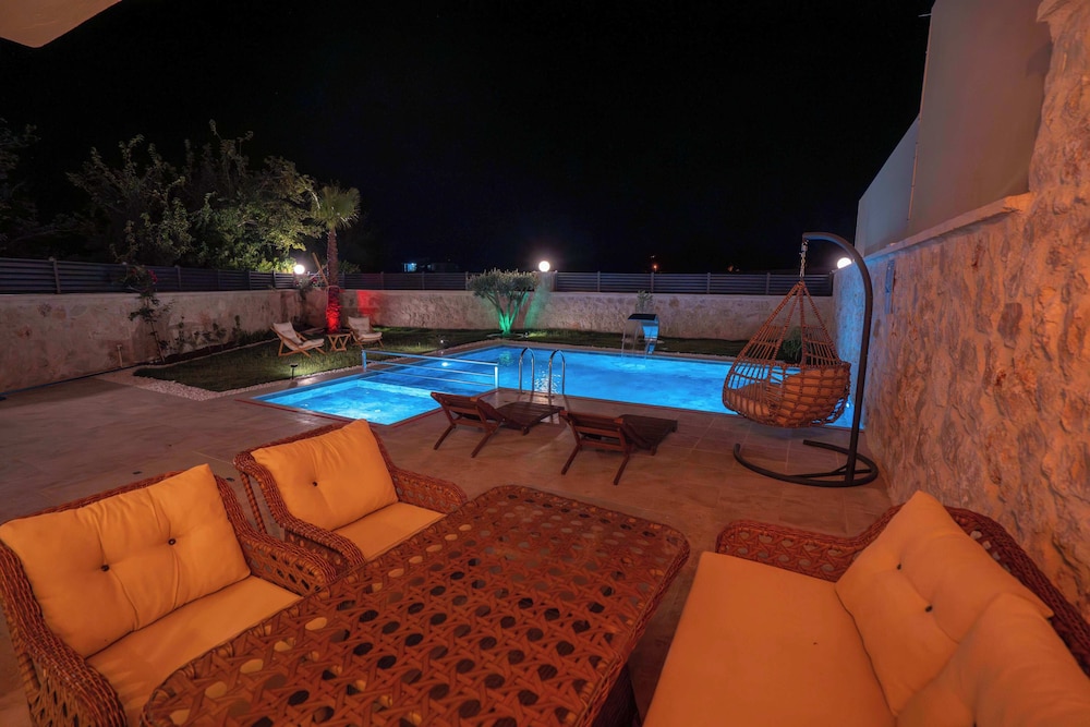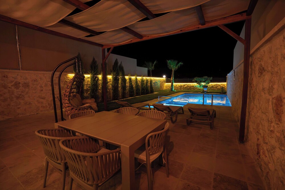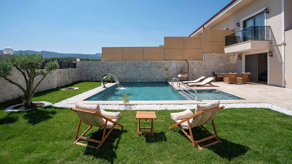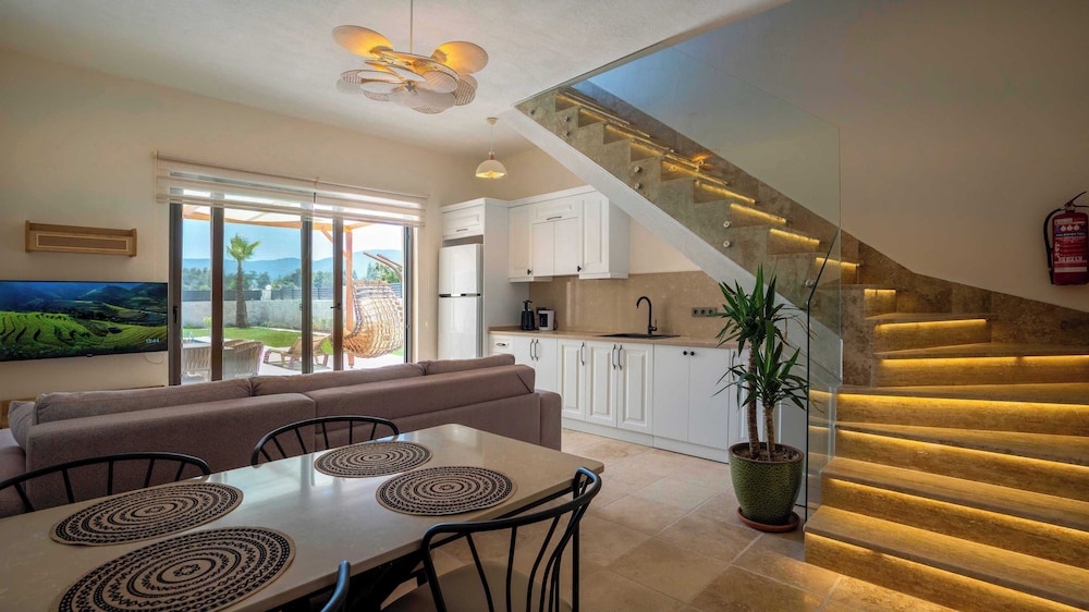Casa Meis Villas & Escapes ligger i bjergene i Kaş, kun 13,9 km fra Myra og 16,3 km fra Kas Panorama. Denne villa ligger 17 km fra Phellus antikke by og 18,6 km fra Antiphellos Ruiner. Forkæl dig selv med et ophold i et af de 8 værelser, der er indrettet med individuelt design, og som desuden indeholder private pools og smart-tv. Din seng er udstyret med egyptiske bomuldslagner, og alle værelserne har en sovesofa i samme størrelse som en queensizeseng. Værelserne har privat møbleret balkon eller terrasse. Der er et køkken til rådighed, som er udstyret med køleskab/fryser i fuld størrelse, ovn og kogeplade. Med gratis Wi-Fi kan du altid komme på nettet, og kabelkanaler sørger for underholdningen. De viste afstande er afrundet til nærmeste 0,1 kilometer.