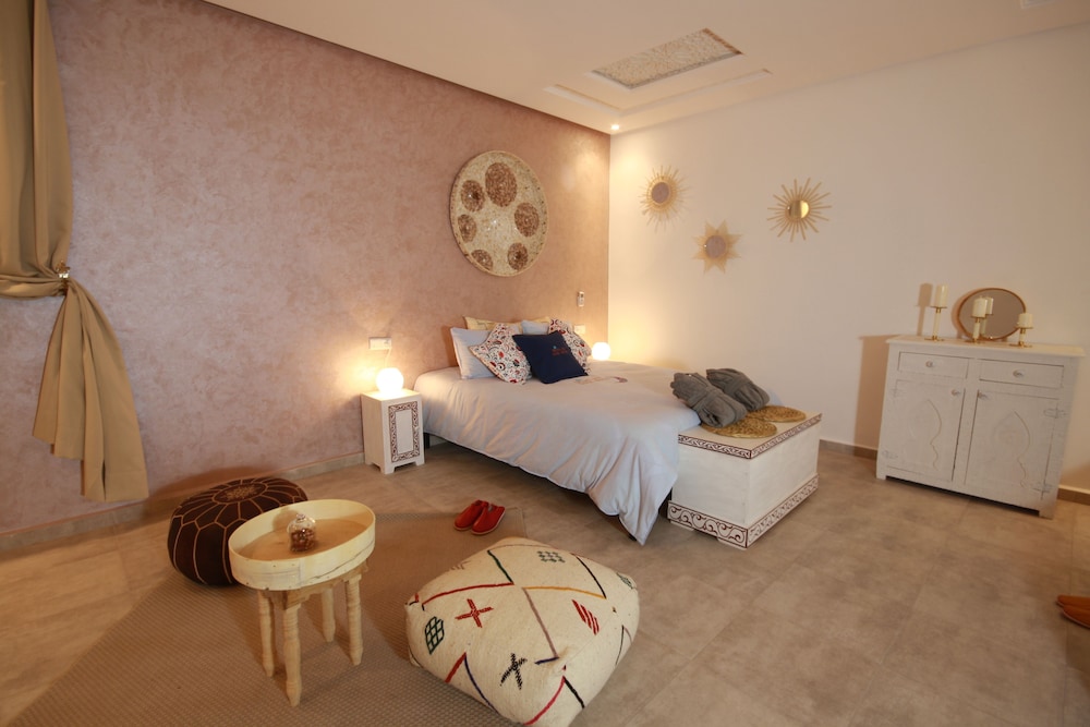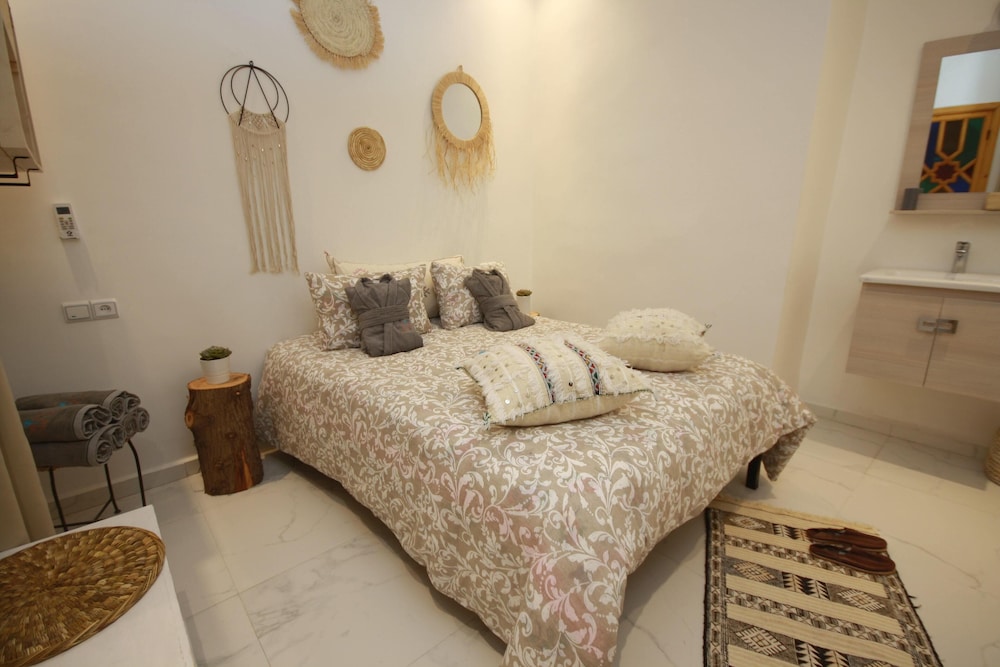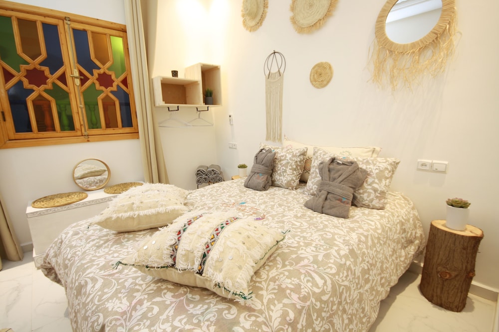 Med et ophold ved Miel et Une Nuit har du en central base i Marrakech, kun 5 minutters kørsel fra Djema al-Fna og Avenue Mohamed VI. Dette gæstehus ligger 4,7 km fra Majorelle Have og 3,6 km fra Marrakech Plaza. Føl dig hjemme i et af de 5 værelser, der er indrettet med individuelt design. Med gratis Wi-Fi kan du altid komme på nettet. Værelset har et privat badeværelse med bruser samt brusehoved med spredningseffekt og hårtørrer. Faciliteter inkluderer pengeskabe og skriveborde, samt telefoner med gratis lokalopkald. De viste afstande er afrundet til nærmeste 0,1 kilometer.