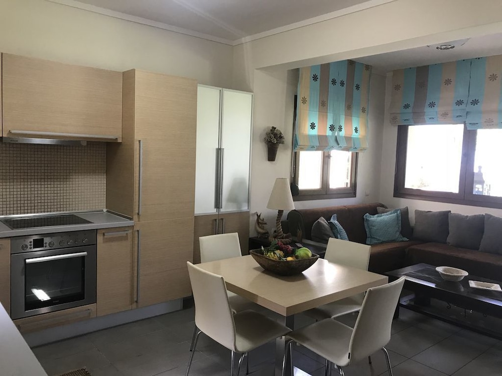 Denne feriebolig ligger tæt på stranden i Kassandra, kun 13 minutters gang fra Lefki Peristera Strand. Dette feriested ligger 3,2 km fra Kryopigi Strand og 5,2 km fra Kallithea Strand. Find dig til rette i denne feriebolig med aircondition. Der er også et køkken med et køleskab og en ovn. Der er et fladskærms-tv, som sørger for underholdningen, samt gratis Wi-Fi, så du altid kan komme på nettet. Faciliteter inkluderer blandt andet en mikrobølgeovn og en kaffe/temaskine. De viste afstande er afrundet til nærmeste 0,1 kilometer.
