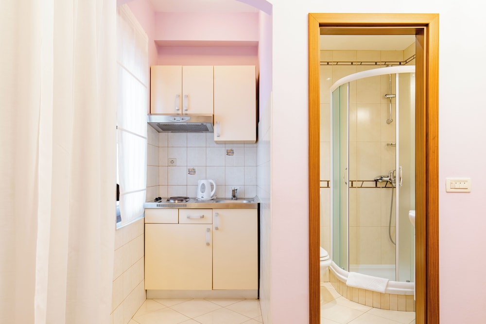 Overnatter du ved Apartments Mara, som ligger ved vandet i Kastela, er du kun 5 minutters kørsel fra Kaštel Stari Gamle Fiskemarked og Pantan. Dette gæstehus ligger 21,6 km fra Diocletians Palads og 22,1 km fra Bacvice Strand. Føl dig hjemme i et af de 8 aircondition-afkølede værelser, der indeholder tekøkken med køleskab og kogeplade. Værelserne har privat balkon eller terrasse. Der tilbydes et fladskærms-tv med satellitkanaler som underholdning, og med gratis Wi-Fi kan du altid komme på nettet. Faciliteter inkluderer elkedler og rengøring udføres efter anmodning. De viste afstande er afrundet til nærmeste 0,1 kilometer.