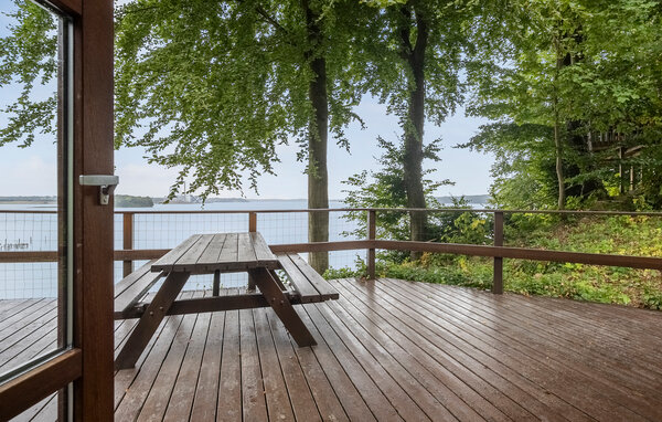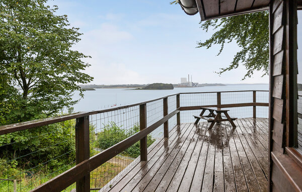 Højt placeret og med en skøn udsigt ud over Kolding Fjord ud til Lillebælt, ligger dette sommerhus af træ kun 40 m fra stranden. Huset ligger på en dejlig stor naturgrund med flere udsigtspunkter på en skråning og med adgang via trapper. Indendørs er der en stue i praktisk åben forbindelse med køkkenet, hvorfra I også kan nyde den betagende udsigt. Sovepladserne er fordelt i et godt soveværelse med dobbeltseng, på hemsen med adgang ad en trappe er der endnu en dobbeltseng og i annekset, med adgang udefra er en sovesofa. Et rigtigt dejligt sommerhus i et naturskønt og fredeligt område hvor der er gode fiskemuligheder, nær Kolding og mange seværdigheder.
