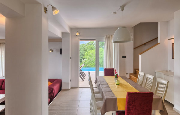 Denne smukke ejendom vil glæde dig med sin fantastiske beliggenhed og panoramaudsigt over havet. Poolområdet er absolut indbydende, da du kan slappe af og nyde udsigten over Kvarnerbugten og naboøerne, mens du frisker op i den private pool eller slapper af i skyggen af det overdækkede loungeområde ved siden af poolen. Denne villa med et usædvanligt navn tilbyder absolut alt til en fantastisk familieferie. Den består af 3 badeværelser og 4 rummelige og hyggelige soveværelser - tre har en dobbeltseng, og et består af to enkeltsenge. Der er plads til yderligere to gæster på sovesofaen i stuen. Det ene soveværelse ligger i underetagen og har direkte udgang til haven. Ovenover, i stueetagen, er der en stor stue og et fuldt udstyret køkken med spiseplads. Den øverste etage er, hvor de resterende 3 soveværelser og 1 badeværelse er. Der er desuden to altaner på denne etage, hvilket sammen med alle andre terrasser og lounge- og siddemuligheder gør dette hus helt perfekt for naturelskere og alle dem, der kan lide at suge den udendørs atmosfære til sig hele tiden. Udover spisepladsen i villaen er der også spisebord på terrassen med udgang fra stuen, samt på den overdækkede terrasse med det ekstra udekøkken, hvor en gas- og kulgrill står til din rådighed. Hvis du vil skifte den dejlige infinity-pool ud med svømning i havet, ligger den nærmeste strand kun omkring 1,5 km væk. Villaen har også to private parkeringspladser og en garage. Den smukke Villa Kvija Adria ligger kun en kort køretur fra centrum af Rijeka i Kostrena, en gammel populær kystby. Kostrena er kendt for sine smukke strande, klare havvand og en 3 km lang promenade langs kysten med restauranter og barer. De første strande ligger i gåafstand fra villaen. Du kan nyde dykning, sejlads, jetski samt cykling og jogging. Arkæologiske steder på de højeste bakker over Kostrena kan også findes, hvorfra du kan nyde en smuk panoramaudsigt. Den smukke ø Krk kan nås på ca. en halv times kørsel samt bjergene Ucka, Platak og Gorski Kotar.