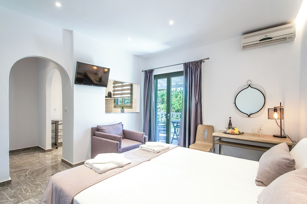Overnatter du ved denne lejlighed, som ligger tæt på stranden i Skiathos, er du kun 15 minutters kørsel fra Koukounaries Strand og Skianthos Havn. Denne lejlighed ligger 1,3 km fra Agia Eleni Strand og 1,3 km fra Mystique strand. Find dig til rette i denne lejlighed.Der er gratis Wi-Fi, så du altid kan komme på nettet. Badeværelset har en bruser med et brusehoved med spredningseffekt. Faciliteter inkluderer blandt andet et seperat siddeområde, og der er rengøring efter anmodning. De viste afstande er afrundet til nærmeste 0,1 kilometer.