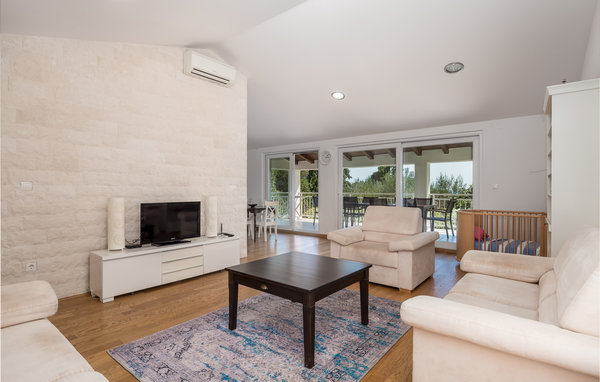 Det har en god beliggenhed i byen Krk, med stor indhegnet grund. Tre soveværelser, to badeværelser og et køkkenalrum udgør husets indre. Etagerne er forbundet via en udvendig trappe.