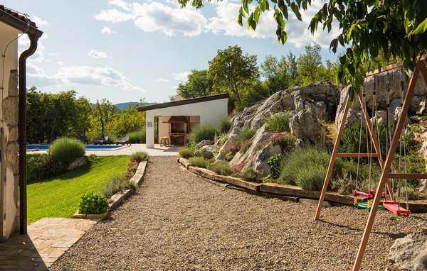 Ydersiden giver en afslappende plads ved poolen. Der kan du slappe af, mens du solbader eller svømmer i den indbydende pool. Udekøkkenet, med overdækket spiseplads, ligger lige ved siden af swimmingpoolen og er udstyret med alle fornødenheder, for at du kan prøve lækre lokale specialiteter, hvor du og din familie og venner kan nyde aftenen i det fri. For yngre besøgende byder villaen på ubekymret sjov på trampolin, gynge eller rutsjebane. Villa Elia har parkeringsplads til 4 biler og er udstyret med Wi-Fi. Kom til Villa Elia og nyd en unik ferie :)Villa Elia ligger i en lille landsby i den centrale del af Istrien. Istrien er godt forbundet og har et fremragende og uoverfyldt vejsystem. Kysten med de store turistcentre er ikke for langt væk i bil, ligesom Pula lufthavn. Den nærmeste strand ligger i Plomin luka omkring 10 km væk. Den Istriske halvø 'terra magica' ligger ved Adriaterhavet, som er det varme hav, der ligger tættest på Europas hjerte. Rabac, Kvarnerbugtens perle, ligger i den østlige del af halvøen. Mod vest er Pazin med dets fascinerende billede af middelalderborgen Pazin (Kaštel), beliggende over de 130 m klipper, hvor Pazinčica-floden løber ud i Pazin-graven, inspirerede den berømte franske forfatter Jules Verne som ramme for en del af hans roman "Mathias Sandorf", udgivet i 1885. I dag er der en Jules Verne-klub i Pazin og hvert år i slutningen af juni arrangeres Jules Vernes Dage.