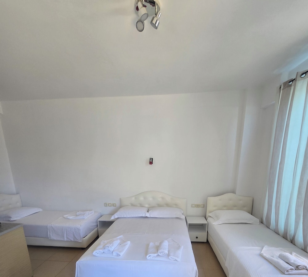 Med et ophold ved Hotel Belle Vue i Ksamil er du kun 15 minutters gang fra Ksamil-øerne og Butrint Nationalpark. Dette hotel ligger 1,9 km fra Det Ioniske Hav og 3,6 km fra Butrint National Arkæologiske Park. Føl dig hjemme i et af de 60 aircondition-afkølede værelser, der desuden indeholder fladskærms-tv. Med gratis Wi-Fi kan du altid komme på nettet, og kabelkanaler sørger for underholdningen. Badeværelserne har gratis toiletartikler og bidet. Faciliteter inkluderer skriveborde og strygejern/strygebrætter, og rengøring udføres dagligt. De viste afstande er afrundet til nærmeste 0,1 kilometer.