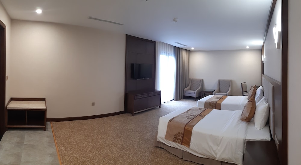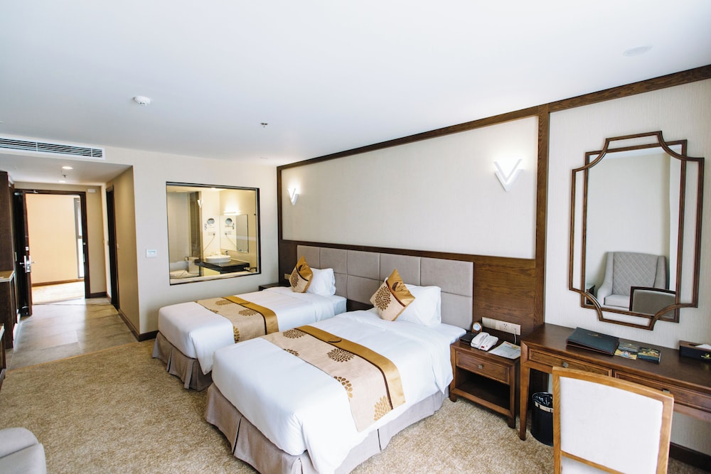 Duc Huy Grand Hotel & Spa ligger med forbindelse til konferencecenteret i Lao Cai, kun 4 minutters kørsel fra Lào Cai By Plads og 6 minutters kørsel fra Den Mau-templet. Dette hotel ligger 34,1 km fra Sapa-søen og 6,6 km fra Hekou Toldsted. Føl dig hjemme i et af de 87 aircondition-afkølede værelser, der indeholder minibar og LED-tv. Værelserne har privat balkon. Med gratis Wi-Fi kan du altid komme på nettet, og kabelkanaler sørger for underholdningen. Badeværelserne har separat badekar og bruser med dybe badekar og brusehoved med spredningseffekt. De viste afstande er afrundet til nærmeste 0,1 kilometer.
