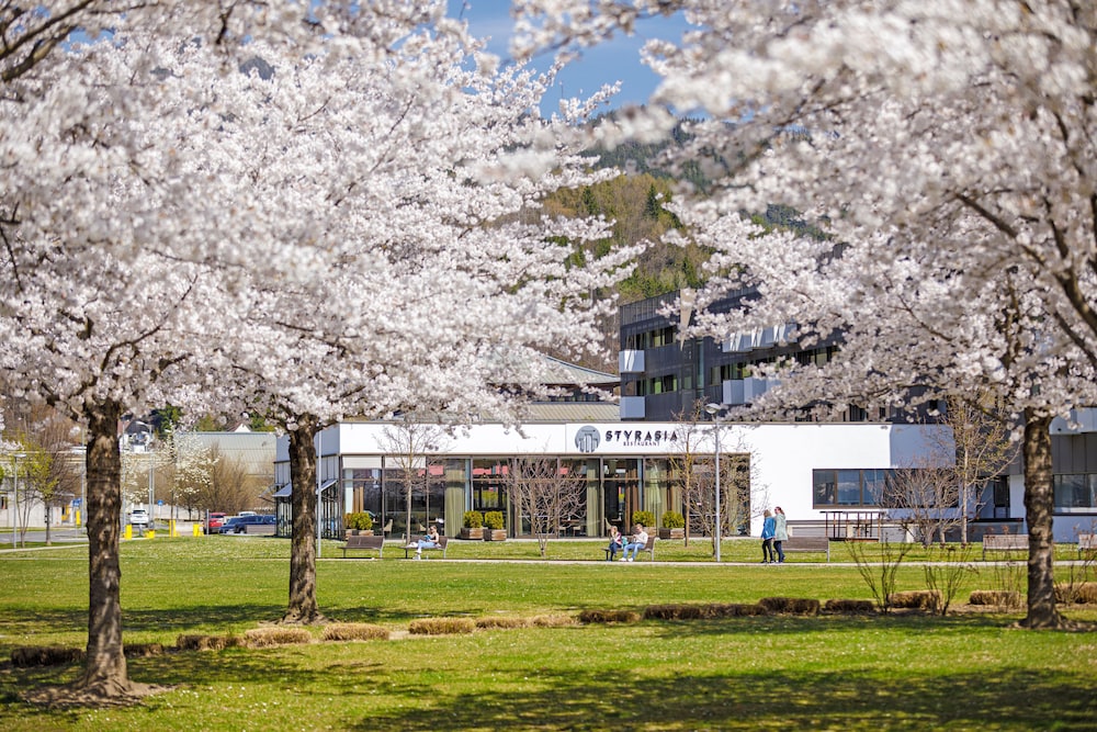 Overnatter du ved Hotel & Asia Spa Leoben, som ligger i nærheden af skilifterne i Leoben, er du kun 15 minutters gang fra Leoben City Shopping og Peststøtte. Dette hotel med familievenlig profil ligger 1 km fra Live Congress Convention Center og 1 km fra Hauptplatz. Føl dig hjemme i et af de 103 værelser, der indeholder minibar og espressomaskine. Værelserne har privat balkon. Der tilbydes et fladskærms-tv med satellitkanaler som underholdning, og med gratis Wi-Fi kan du altid komme på nettet. Badeværelserne indeholder badekar eller bruser med brusehoved med spredningseffekt og gratis toiletartikler. De viste afstande er afrundet til nærmeste 0,1 kilometer.