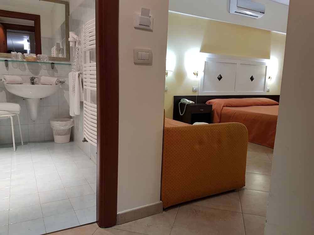 Overnatter du ved San Vincenzo, som ligger ved strandpromenaden i Letojanni, er du kun 5 minutters gang fra Letojanni Strand og Church of San Giuseppe. Dette hotel med 4 stjerner ligger 4,1 km fra Isola Bella og 6 km fra Taormina. Føl dig hjemme i et af de 42 aircondition-afkølede værelser, der desuden indeholder minibar. Med gratis Wi-Fi på værelset kan du altid komme på nettet. Værelset har et privat badeværelse med badekar eller bruser samt gratis toiletartikler og bidet. Faciliteter inkluderer telefoner samt pengeskabe og skriveborde. De viste afstande er afrundet til nærmeste 0,1 kilometer.