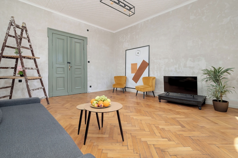 Med et ophold ved denne lejlighed i Łódź (Śródmieście) er du kun få skridt fra Piotrkowska-gaden og Museum for Etnografi og Arkæologi. Denne lejlighed ligger 0,3 km fra Rose Passage og 0,9 km fra Balucka Galleri. Find dig til rette i denne lejlighed med individuelt møblement. Der er også et køkken med både et køleskab og en kogeplade. Der er gratis Wi-Fi, så du altid kan komme på nettet. Faciliteter inkluderer blandt andet en mikrobølgeovn og en kaffe/temaskine. De viste afstande er afrundet til nærmeste 0,1 kilometer.