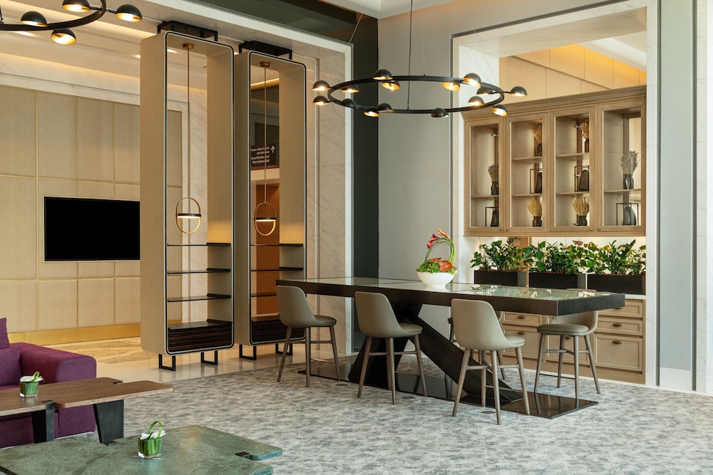 Booker du et ophold ved Le Royal Méridien Place Vendôme Lusail i Lusail (Entertainment District), er du kun få skridt fra Place Vendôme Mall og 4 minutters kørsel fra Lusail Marina Corniche. Dette hotel med familievenlig profil ligger 4,2 km fra Crescent Park og 6,9 km fra Doha Golfklub. Overnat i et af de 377 værelser, der indeholder LCD-tv. Med gratis Wi-Fi kan du altid komme på nettet, og kabelkanaler sørger for underholdningen. Værelset har et privat badeværelse med gratis toiletartikler og bidet. Faciliteter inkluderer telefoner samt pengeskabe og skriveborde. De viste afstande er afrundet til nærmeste 0,1 kilometer.