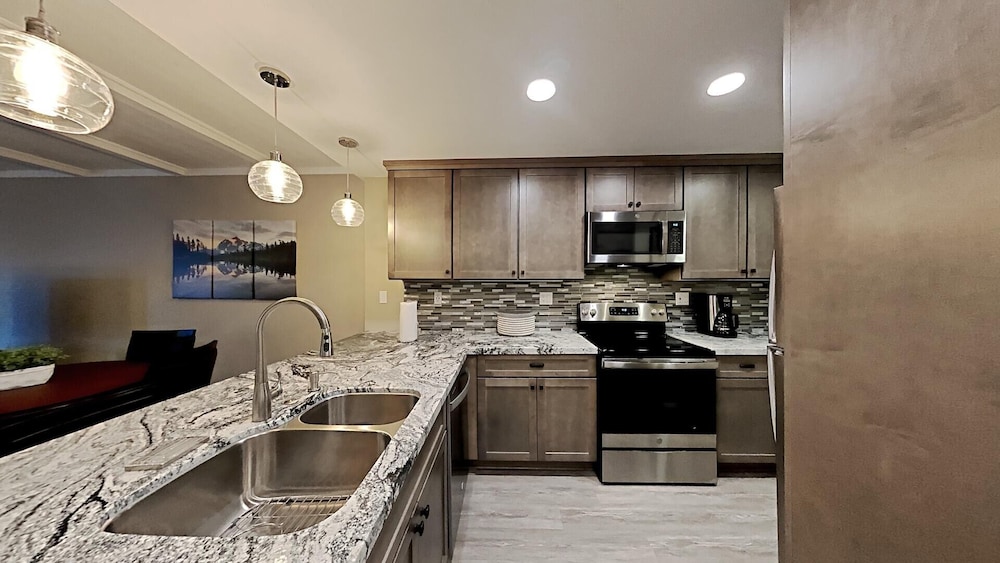 Overnatter du ved denne lejlighed, som ligger ved siden af en golfbane i Mammoth Lakes, er du kun 15 minutters kørsel fra Mammoth Mountain-skiferiestedet og Chair 8 Ski Lift. Denne lejlighed med golffaciliteter ligger 0,6 km fra School Yard Express og 0,6 km fra Canyon Express Lift. Find dig til rette i denne lejlighed, som har et køleskab. Der er gratis Wi-Fi, så du altid kan komme på nettet. Badeværelset har et badekar eller en bruser.Faciliteter inkluderer blandt andet en kaffe/temaskine og en vaskemaskine. De viste afstande er afrundet til nærmeste 0,1 kilometer.