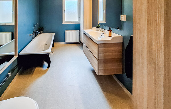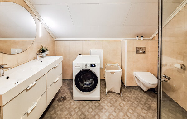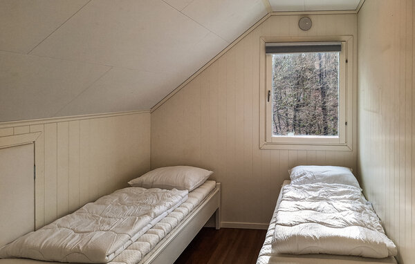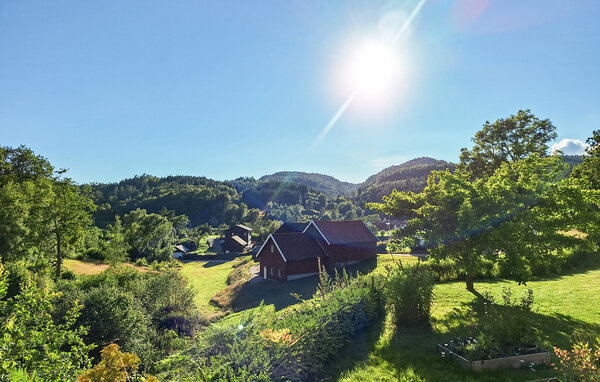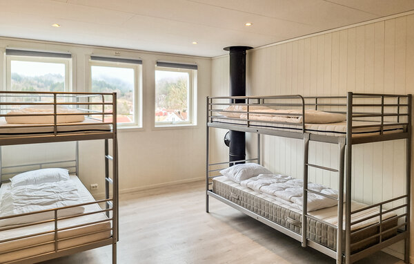 Oplev en afslappende ferie i dette stilfulde feriehus, idyllisk beliggende i et skønt naturområde. Her finder I den ideelle balance mellem komfort og det imponerende norske landskab. Find jer godt til rette i den rummelige opholdsstue. Den smagfulde indretning med varme farver, store sofaer og en brændeovn skaber en indbydende atmosfære. Nyd nogle afslappende aftener med en film eller læs en god bog i det komfortable siddeområde. Det moderne køkken giver jer mulighed for at tilberede lækre måltider. Spis sammen ved det store spisebord i træ og tilbring hyggelige timer sammen.