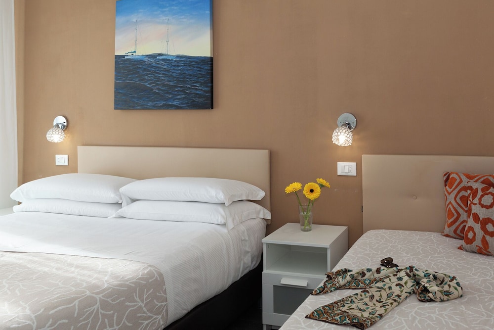 Med et ophold hos MoMo Seaview Hotel Rimini i Rimini (Marina Centro) er du kun få skridt fra Viale Regina Elena og 8 min. gang fra Centro Congressi SGR. Dette hotel ved stranden ligger 2,4 km fra Rimini Strand og 3,9 km fra Palacongressi di Remini. Føl dig hjemme i et af de 42 aircondition-afkølede værelser, der desuden indeholder fladskærms-tv. Værelserne har privat balkon. Med gratis Wi-Fi kan du altid komme på nettet, og satellitkanaler sørger for underholdningen. Værelset har et privat badeværelse med bruser samt gratis toiletartikler og bidet. De viste afstande er afrundet til nærmeste 0,1 kilometer.