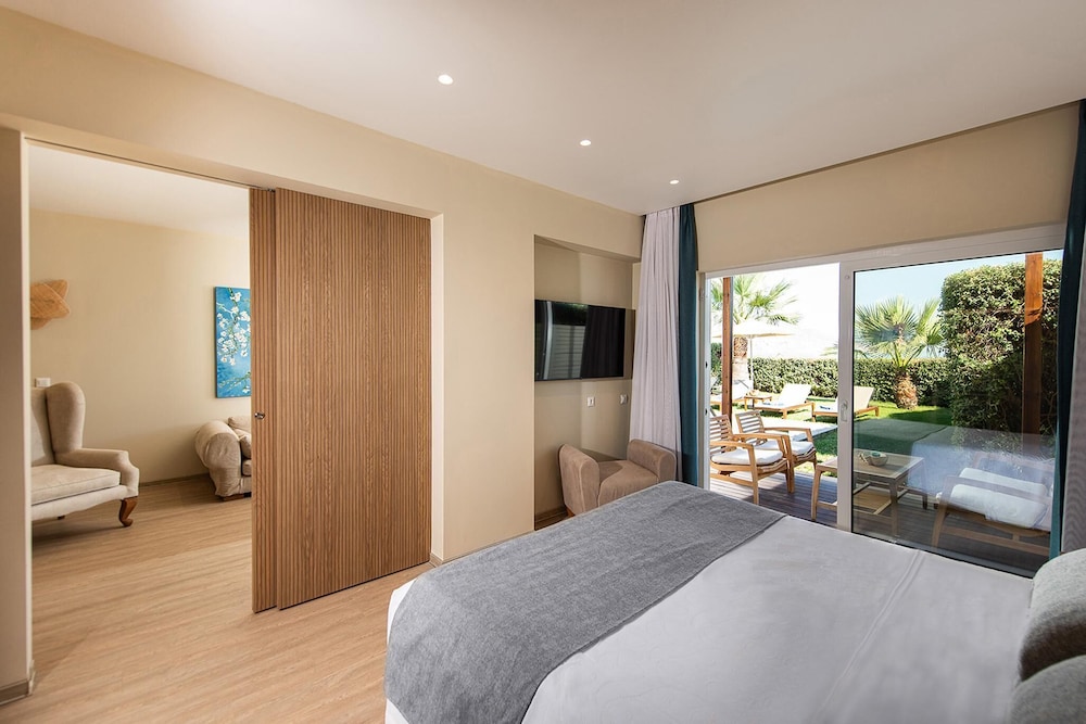 Med et ophold ved Pilot Beach Resort i Apokoronas, befinder du dig på stranden, blot fem minutters kørsel fra Georgioupoli Strand og Kournas-søen. Dette hotel ved stranden ligger 10,6 km fra Dourakis Vingård og 14,1 km fra Argiroupoli-kilderne. Føl dig hjemme i et af de 450 værelser, der indeholder køleskab og minibar. Med gratis Wi-Fi kan du altid komme på nettet, og satellitkanaler sørger for underholdningen. Værelset har et privat badeværelse med bruser samt gratis toiletartikler og hårtørrer. Faciliteter inkluderer telefoner samt pengeskabe og skriveborde. De viste afstande er afrundet til nærmeste 0,1 kilometer.