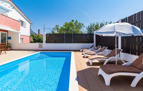 Dette feriehus ligger i en rolig gade, og er komplet udstyret til en afslappet ferie. I stueplan ligger soveværelser med egen indgang, badeværelse, køkken og spillelokale med billardbord. Ad en udendørs trappe kommer I op på første sal med to soveværelser, badeværelse, køkken i kombination med stue og udgang til altan. I haven er der en sportsplads hvor I kan dyrke forskellige former for sport: tennis, basketball, volleyball og fodbold samt en lille legeplads til familiens yngste. Forfrisk jer i den dejlige pool på de hede sommerdage, hvorfor ikke begynde dagen med en skøn svømmetur? Efter aftale og mod betaling til husets ejer, kan I aftale besøg af professionel massør og kosmetolog. I kan få behandling i et rum I huset der er udstyret til samme formål. Et perfekt feriemål, til en hyggelig og afslappet ferie, fuld af selvforkælelse, afslapning og oplevelser i et smukt landskab. Besøg også den antikke by Pula med mange kulturelle seværdigheder og den livlige ferieby Medulin. Sidste 50 meter op til huset, sker ad en grusvej.