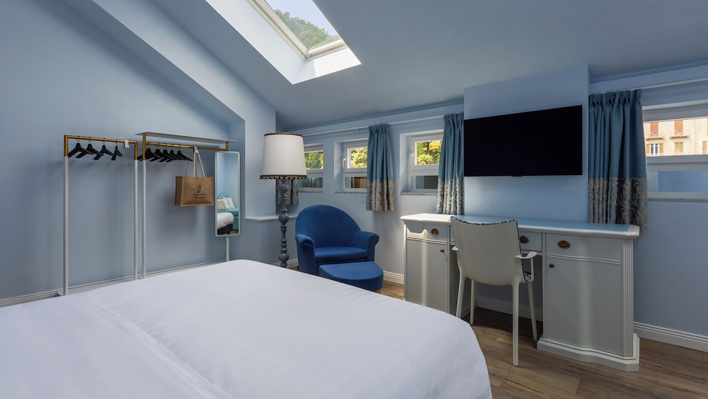 Med et ophold ved Grand Hotel Menaggio har du en base i hjertet af Menaggio, kun 15 minutters gang fra Menaggio Strand og Piazza Giuseppe Garibaldi. Dette hotel med golffaciliteter ligger 13,5 km fra Lake Lugano og 9,4 km fra Villa del Balbianello. Føl dig hjemme i et af de 94 aircondition-afkølede værelser, der desuden indeholder minibar. Med gratis Wi-Fi kan du altid komme på nettet, og satellitkanaler sørger for underholdningen. Badeværelserne har badekar eller bruser, gratis toiletartikler og hårtørrer. Faciliteter inkluderer pengeskabe og skriveborde, og rengøring udføres dagligt. De viste afstande er afrundet til nærmeste 0,1 kilometer.