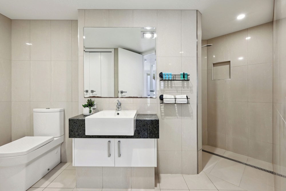 Fra CHA Private Apts Diamond Beach, som ligger i Gold Coast (Mermaid Beach), er der kun 15 minutters gang til Pacific Fair Shopping Centre og The Star Gold Coast. Denne lejlighed med familievenlig profil ligger 1,2 km fra Gold Coast Kongres- og Udstillingscenter og 3,8 km fra Surfers Paradise Beach. Føl dig hjemme i et af de 3 værelser, der er indrettet med individuelt design, og som desuden indeholder køkken med køleskab og ovn. Værelserne har privat balkon eller terrasse. Der tilbydes et fladskærms-tv med digitale kanaler som underholdning, og med gratis Wi-Fi kan du altid komme på nettet. Faciliteterne inkluderer separate siddeområder og mikrobølgeovne. De viste afstande er afrundet til nærmeste 0,1 kilometer.