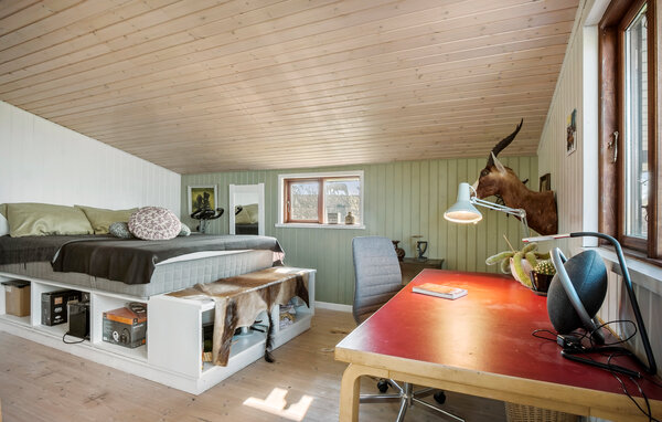 Velkommen til en smuk plet på det danske landkort, nemlig Røjle Klint på den nordvestlige del af Fyn. Her kan I holde en skøn og fredfyldt ferie, for de fortryllende rammer gør det nemt at slappe af. Slå dørene op til det klassiske sommerhus med mange særlige finesser. I det store fællesrum kan I nyde lyset og udsigten gennem panoramavinduerne og tænde op i brændeovnen på en kølig dag. Sæt jer til rette med en god bog i alkoven, mens retterne simrer i køkkenet, og børnene hygger sig med brætspil ved spisebordet. Flere gange i løbet af dagen kommer man let til at dagdrømme, når man kigger ud på indsejlingen til Lillebælt.