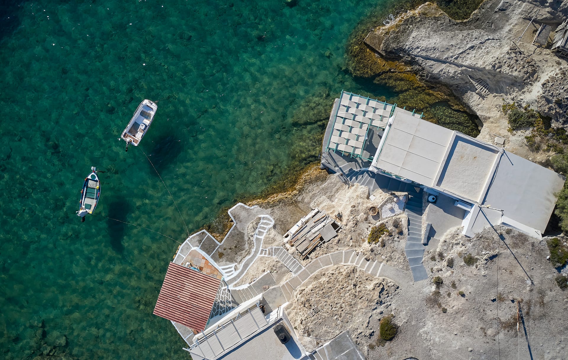 Terra Mare Suites offer a unique experience of accommodation in Milos, one of the most romantic and at the same time special places of the island, Mytakas. Designed to match the peace with the ultimate luxury experience, they come with their refined style to enchant every visitor. Terra Mare Suites flirt with the sea, as they are located in the edge of a rock, which hugs and dances in the rhythm of its waves, and having the endless blue in the background a magical audiovisual image is created.