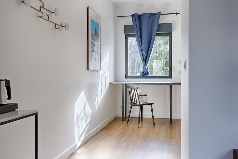 La Coudraie ligger i landlige omgivelser i Montévrain, kun 2 minutters kørsel fra Val d'Europe og 6 minutters kørsel fra Aquatonic Paris Val d'Europe. Dette hotel med familievenlig profil ligger 4,9 km fra Disneyland® Paris og 27,9 km fra Villepinte Udstillingscenter. Føl dig hjemme i et af de 20 aircondition-afkølede værelser, der desuden indeholder fladskærms-tv. Værelserne har privat terrasse. Med gratis Wi-Fi kan du altid komme på nettet, og satellitkanaler sørger for underholdningen. Badeværelserne har bruser og hårtørrer. De viste afstande er afrundet til nærmeste 0,1 kilometer.
