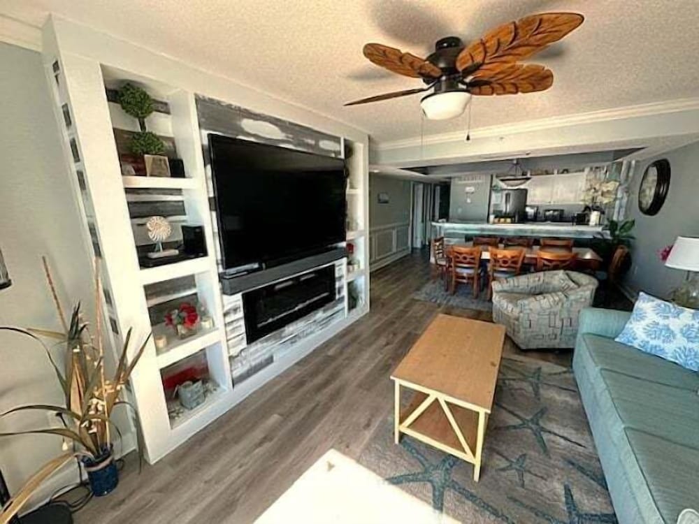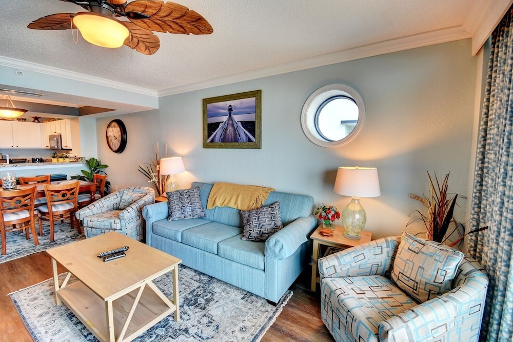 Overnatter du ved denne lejlighed, som ligger på stranden i Myrtle Beach, er du kun få skridt fra Myrtle Beach Beaches og 3 minutters kørsel fra Myrtle Beach Boardwalk. Denne lejlighed ved stranden ligger 7,1 km fra Broadway at the Beach og 1,9 km fra Family Kingdom Amusement Park. Find dig til rette i denne lejlighed med aircondition. Der er også et køkken med et køleskab og en mikrobølgeovn. Der er et fladskærms-tv, som sørger for underholdningen, samt gratis Wi-Fi, så du altid kan komme på nettet. Faciliteter inkluderer blandt andet en telefon. Der er også en kaffe/temaskine og en vaskemaskine. De viste afstande er afrundet til nærmeste 0,1 kilometer.