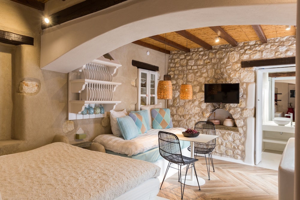 Med et ophold ved Kallos Villas & Suites i Naxos er du kun 3 minutters kørsel fra Naxos Havn og 10 minutters kørsel fra Agios Prokopios Strand. Dette gæstehus ligger 6,8 km fra Plaka Strand og 0,7 km fra Kouros-statuen. Føl dig hjemme i et af de 7 aircondition-afkølede værelser, der desuden indeholder espressomaskine. Værelserne har privat balkon. Med gratis Wi-Fi kan du altid komme på nettet. Værelset har et privat badeværelse med bruser samt gratis toiletartikler og hårtørrer. De viste afstande er afrundet til nærmeste 0,1 kilometer.