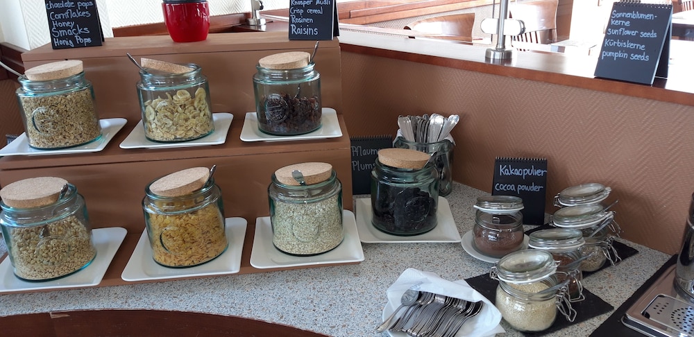- Individually-wrapped food options are available for breakfast.