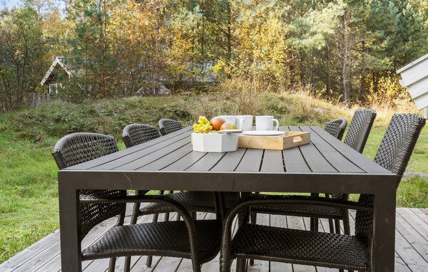 Jeres hyggelige feriehus i Dueodde tilbyder jer den komfort, I behøver for en vellykket ferie. Start dagen med morgenmad på terrassen og nyd udsigten til den private have, som giver masser af plads til afslapning og rekreation. Den lyse opholdsstue indbyder efter en aktiv dag til at slappe af på sofaen og nyde aftentimerne i ro. På køligere dage sørger brændeovnen for en behagelig varme og en afslappet atmosfære. Det moderne, rummelige køkken er ideelt til at tilberede lækre måltider, som I kan nyde i spisestuen eller på terrassen.