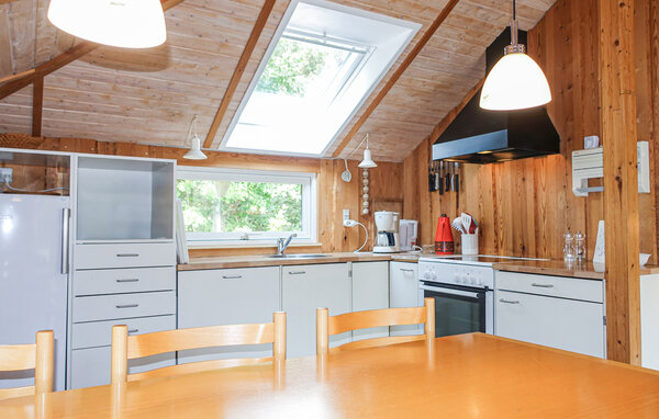 Her får I nogle skønne feriedage, uanset om sæsonen er til indendørshygge eller sol i haven. I opholdsrummet kan I tænde op i brændeovnen på kølige dage og give jer god tid til madlavningen i køkkenet, mens børnene slapper af i de bløde møbler.