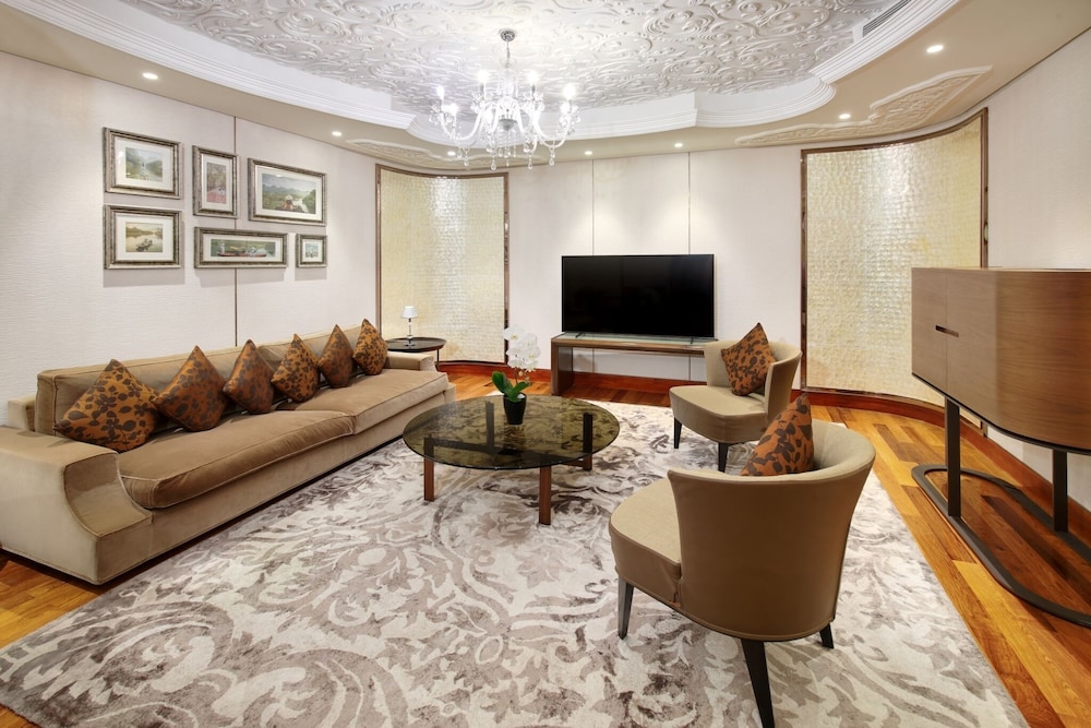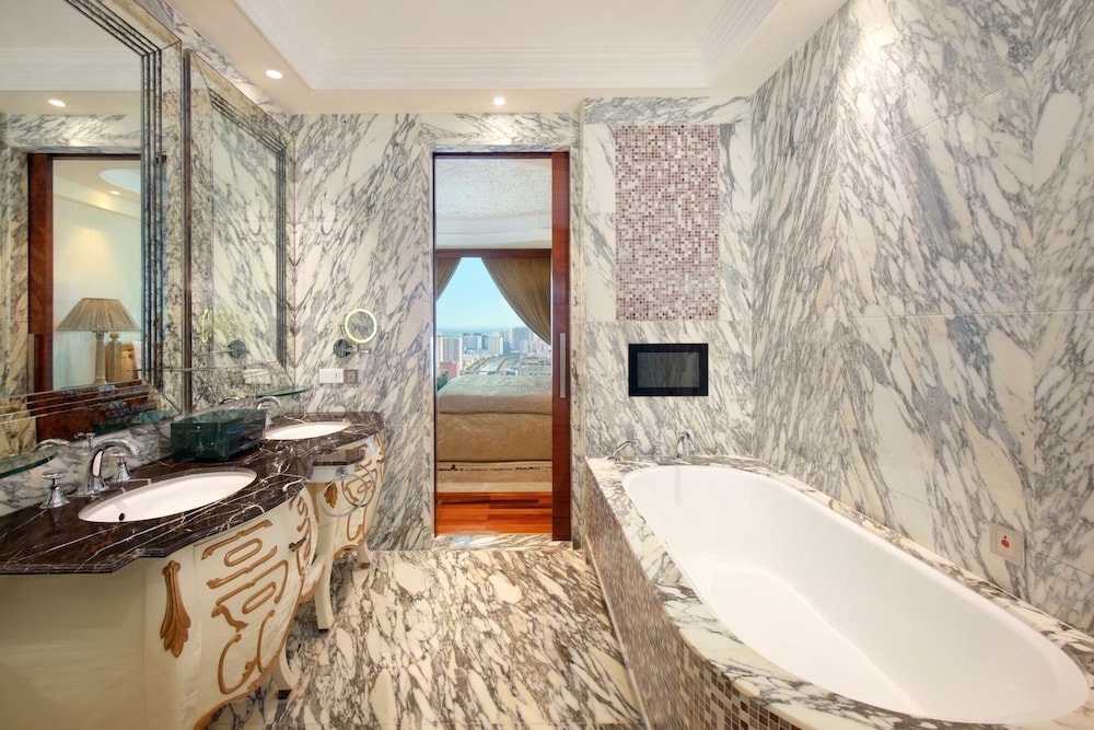 Gæsterne har blandt andet adgang til gratis internetforbindelse via kabel, et forretningscenter og limousine- eller luksusbilservice. Dette hotel tilbyder arrangementfaciliteter, såsom et konferencecenter og 15 mødelokaler. Lufthavnstransport tur-retur er til rådighed mod et tillægsgebyr (døgnet rundt), og gratis selvstændig parkering findes desuden på stedet. Der tilbydes fuld spaservice, hvor du kan slappe af og nyde massage, kropsbehandlinger samt ansigtsbehandlinger. Hvis du leder efter rekreative muligheder, vil du kunne finde en udendørs pool, en sauna og et fitnesscenter. Dette hotel tilbyder desuden gratis trådløs internetadgang, concierge-tjenester og shopping på stedet. Spis dig mæt i kinesiske retter på The Royal Pavilion, som er en af dette hotels 2 restauranter, eller bliv på værelset, og nyd godt af roomservice døgnet rundt. Du kan også købe en snack på stedets kaffebar/café. Tag forbi baren/loungen, hvor du kan slukke tørsten med din yndlingsdrink. Fuld morgenmad serveres på hverdage fra kl. 06.30 til kl. 10.30 og i weekenderne fra kl. 06.30 til kl. 11.00 mod et gebyr. LOCALIZEDu vil blive bedt om at betale følgende på overnatningsstedet. Gebyrer inkluderer muligvis skatter: