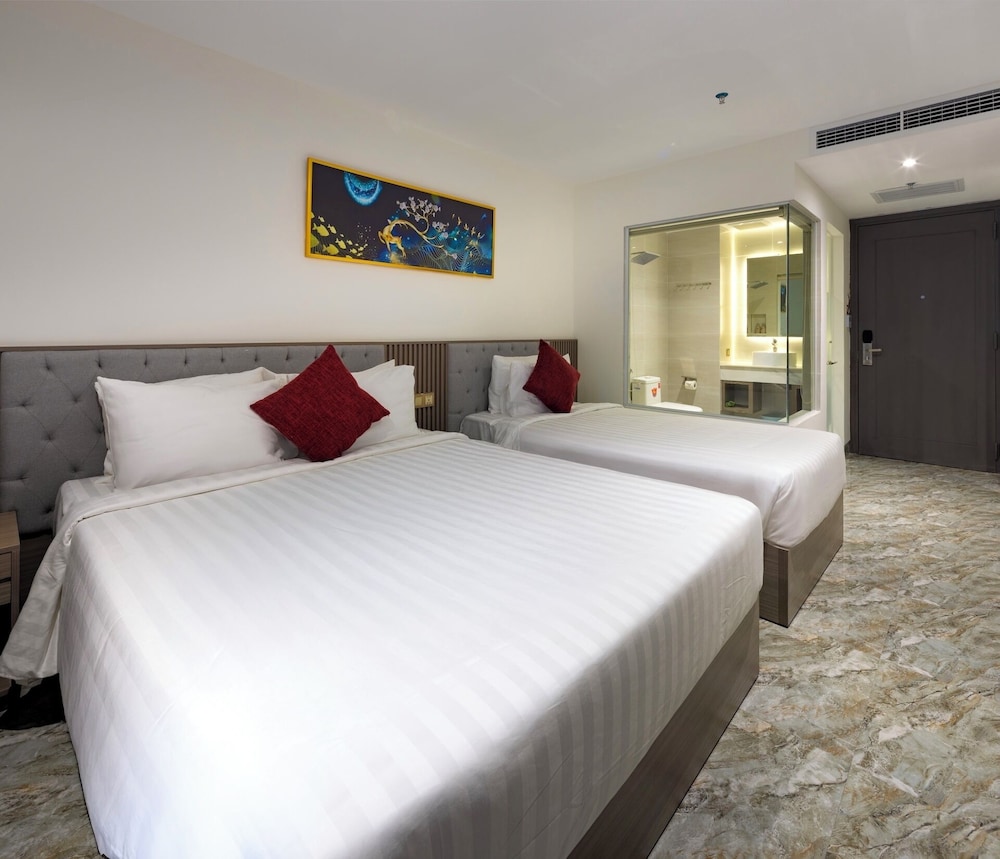 Med et ophold ved Pearl City Hotel Nha Trang i Nha Trang er du kun 5 minutters kørsel fra Nha Trang Night Market og 100!Egg Mud Bath. Dette hotel ligger 2,7 km fra Louisiane bryghus og 3,5 km fra April 2 Square. Føl dig hjemme i et af de 80 aircondition-afkølede værelser. Med gratis Wi-Fi kan du altid komme på nettet. Badeværelserne har gratis toiletartikler og hårtørrer. De viste afstande er afrundet til nærmeste 0,1 kilometer.