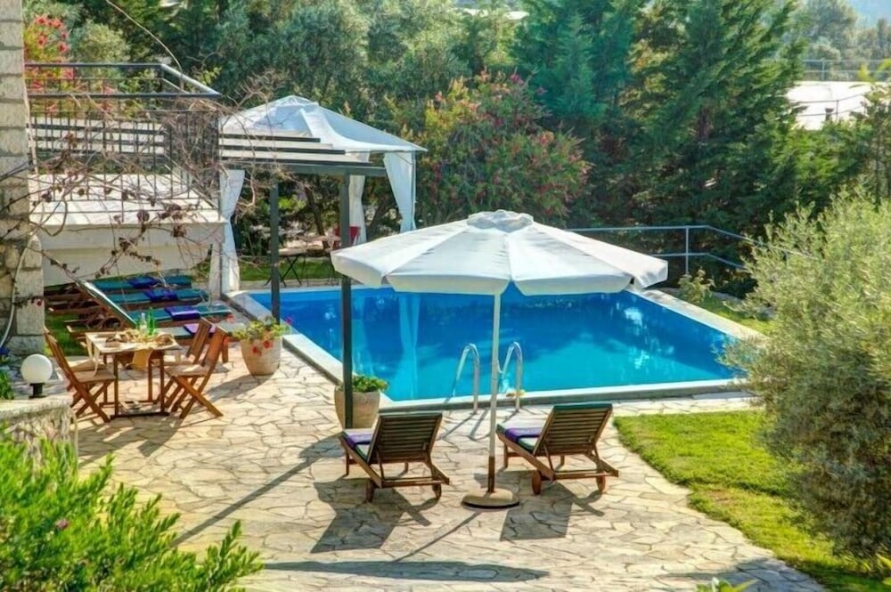 Fra Villa Iremia & Villa Galini i Lefkada er der kun få skridt til Det Ioniske Hav og 2 min. kørsel til Onasis-statuen. Denne villa ligger 1,3 km fra Dimosari-vandfaldet og 1,3 km fra Nidri-vandfaldene. Føl dig hjemme i et af de 2 aircondition-afkølede værelser, der indeholder køkken. Med gratis Wi-Fi kan du altid komme på nettet. De viste afstande er afrundet til nærmeste 0,1 kilometer.
