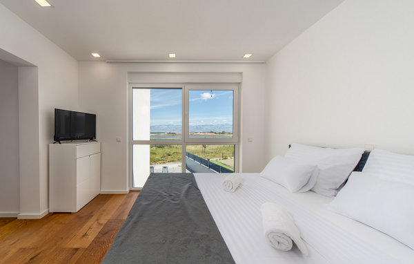 Glæd jer til en afslappende ferie i dette luksuriøse feriehus med pool og havudsigt. Den moderne Villa Nin ligger i en lavvandet lagune og byder jer velkommen med et minimalistisk og eksklusivt interiør. Store vinduer tilbyder udsigt over det maleriske landskab helt ned til havet og giver de rummelige værelser masser af naturligt dagslys. Nyd kulinariske lækkerier med venner, sæt jer ved det stilfulde spisebord, hold jer i form på træningsmaskinerne eller nyd Nintendo Wii. Vågn op lige efter I er vågnet, og tag en afslappende svømmetur i den elegante pool. Den overdækkede terrasse er det ideelle sted for middelhavsretter på varme sommerdage, og komfortable liggestole lægger op til at slappe af i timevis. Forkæl jer selv med et glas kroatisk vin ved solnedgang, og fejr jeres tid sammen med stemningsfulde grillmad. Oplev regionens mange smukke klippe- og sandstrande, og forkæl jer selv med en svømmetur i det berømte helbredende mudder i Nin. Gå en tur gennem den historiske gamle bydel i Nin, og prøv regionale specialiteter. Prøv windsurfing og kajaksejlads eller oplev undervandsverdenen, mens I snorkler eller dykker. Se flamingoer i saltpanderne, vandre i Velebitbjergene, og gå ikke glip af Zadar med havorglet og "Hilsen til solen".