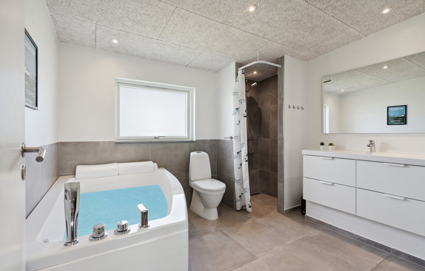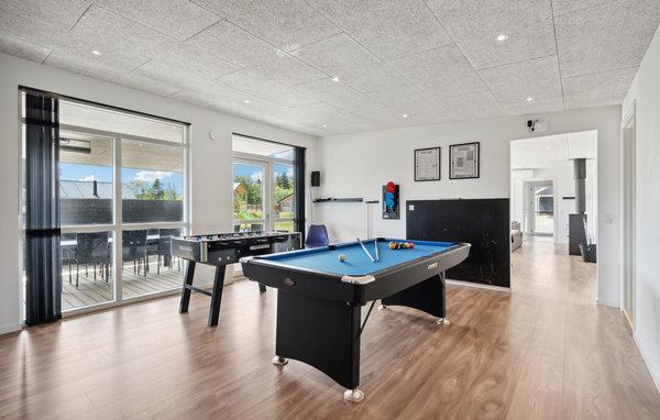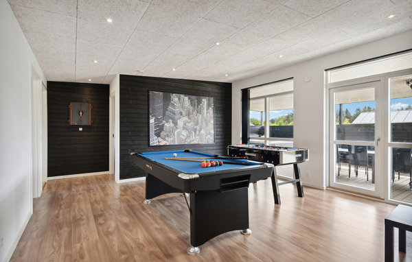 Er komfort, rummelighed og gode faciliteter samt beliggenheden vigtigt for jer i et feriehus? Så har I fundet jeres drømmeferiebolig her! Velkommen til dette hus, som byder på en stilfuld atmosfære med komfortable møbler og et smagfuldt samspil mellem lyse og mørke farver. Udover skønne stunder i den indbydende stue og i det fantastisk store køkken kan I tilbringe en masse tid med jeres børn i aktivitetsrummet, hvor I kan muntre jer med billard, bordfodbold eller dart. I kan også forkæle jer selv med jeres eget wellness-program i saunaen eller i strandvandsspaen på terrassen. Glæd jer til en hyggelig stund udenfor, hvor I kan nyde solen på terrassen, mens jeres børn leger, hopper eller klatrer i haven.
