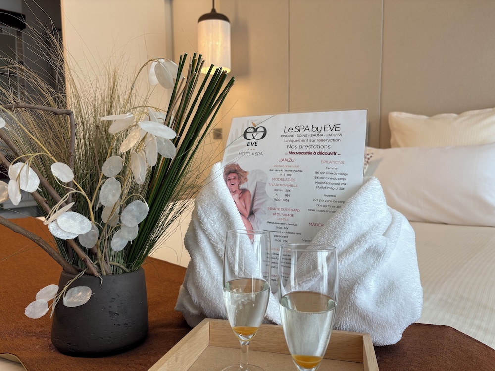 Med et ophold ved Eve Hôtel & Spa*** Cap Agde i Agde (Nudistlandsby) er du kun 15 minutters kørsel fra Cap d'Agde-stranden og Cap d'Agde Middelhavs Konferencecenter. Dette hotel med spa ligger 0,9 km fra Occitanie Strande og 2,6 km fra Tennis og Padel Cap d'Agde. Du vil helt sikkert føle dig hjemme i et af stedets 51 værelser. Med gratis Wi-Fi kan du altid komme på nettet, og satellitkanaler sørger for underholdningen. Faciliteter inkluderer pengeskabe og rengøring udføres dagligt. De viste afstande er afrundet til nærmeste 0,1 kilometer.