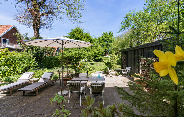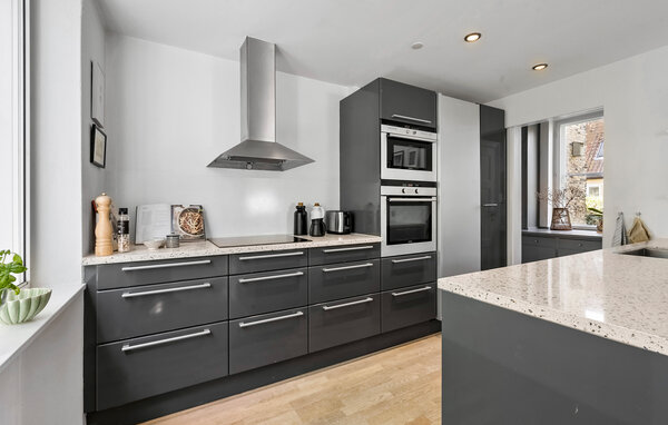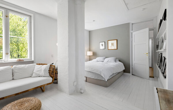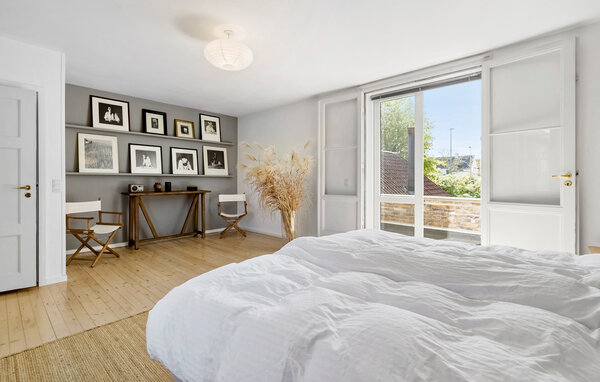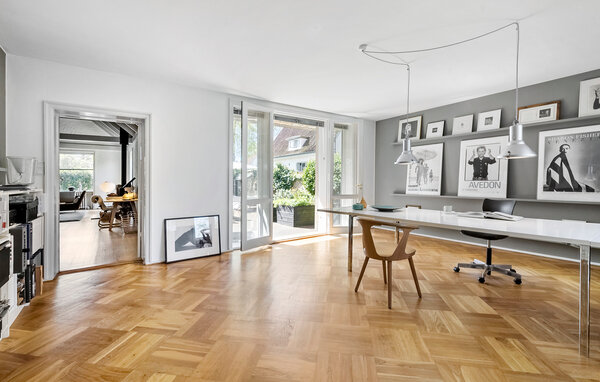 Denne eksklusive villa ligger i det rolige, centralt beliggende Hunderup-kvarter, et af de smukkeste områder i Odense. Her bor I i en rummelig bolig fordelt på tre etager. Glæd jer til en ferie, der forener byliv med afslapning i grønne oaser. Oplev den store opholdsstue med åbne bjælker, brændeovn og stilfulde møbler i skandinavisk design. Læs en god bog i loungestolen, eller slap af på sofaen med udsigt til den grønne have. Tilbered jeres livretter sammen i det moderne køkken, og nyd dem ved det hyggelige spisebord.